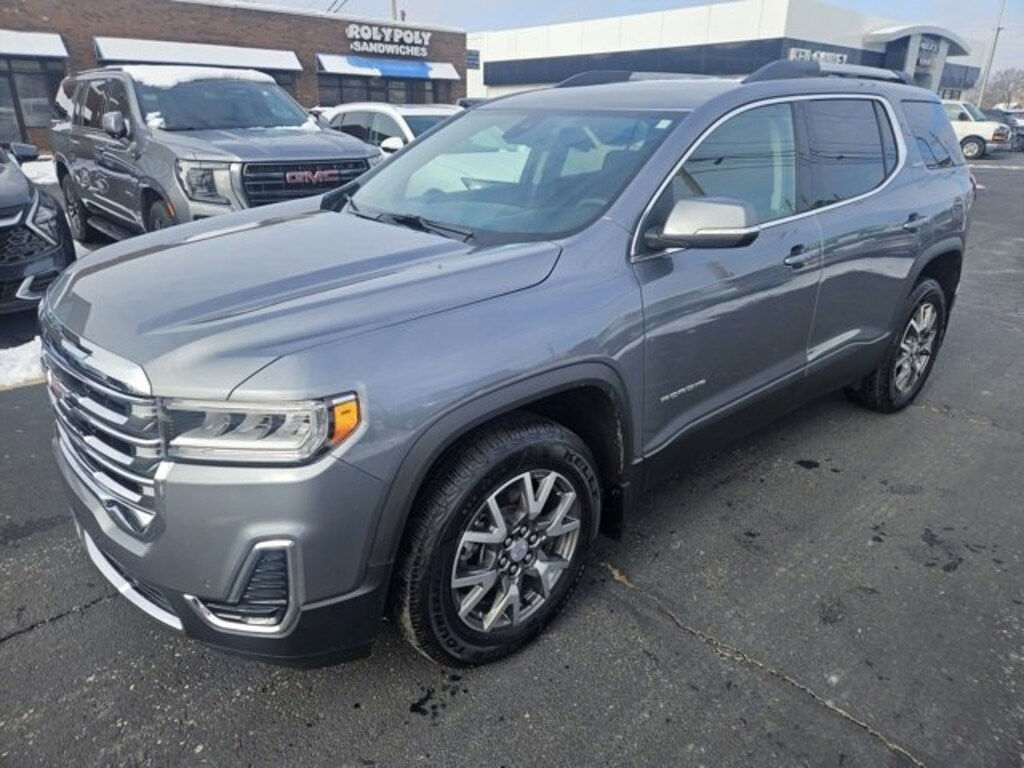 Recent Arrival! ACCIDENT FREE CARFAX, **CERTIFIED**, **NON-SMOKER**, LOCAL TRADE IN, **REMOTE START**, **ANDROID AUTO / APPLE CAR PLAY**, **HEATED SEATS**, **All Wheel Drive**, AWD, Jet Black Cloth, 120-Volt Power Outlet, 1st & 2nd Row All-Weather Floor Mats, 3rd Row All-Weather Floor Mats, 8-Way Power Driver Seat Adjuster, All-Weather Rear Cargo Mat (LPO), Brushed Aluminum Roof Rails, Driver Convenience Package, Hands Free Power Programmable Liftgate, Heated Driver & Front Passenger Seats, Interior Protection Package (LPO), Power Driver Lumbar Control Seat Adjuster, Remote Start. Certified. Satin Steel Metallic 2021 GMC Acadia SLE AWD 9-Speed Automatic 3.6L V6 SIDI*We Deliver! From our Floor to your Door! With Ganley Buick GMC you can buy online! Email - chat - phone - Face-time - text and we will deliver your New or Used vehicle to your door! IT'S THAT EASY! (*Restrictions apply - see dealer for details) Odometer is 23274 miles below market average! 19/26 City/Highway MPGGMC Certified Pre-Owned Details:* Powertrain Limited Warranty: 72 Month/100,000 Mile (whichever comes first) from original in-service date* Warranty Deductible: $0* 172 Point Inspection* 24 months/24,000 miles (whichever comes first) Certified Pre-Owned Scheduled Maintenance Plan and 3 days/150 miles (whichever comes first) Vehicle Exchange Program. SiriusXM 3-month trial subscription* Vehicle History* Roadside Assistance* Limited Warranty: 12 Month/12,000 Mile (whichever comes first) from certified purchase date* Transferable WarrantyThis vehicle is available for test drive most days, but to confirm availability please call us at (440)238-5600. For most recently updated pricing and to view other vehicles in our inventory please visit our website. www.GanleyBuickGMC.com Our family run dealership offers a friendly, inviting atmosphere with a staff equipped to helpfully guide you through your vehicle purchase.