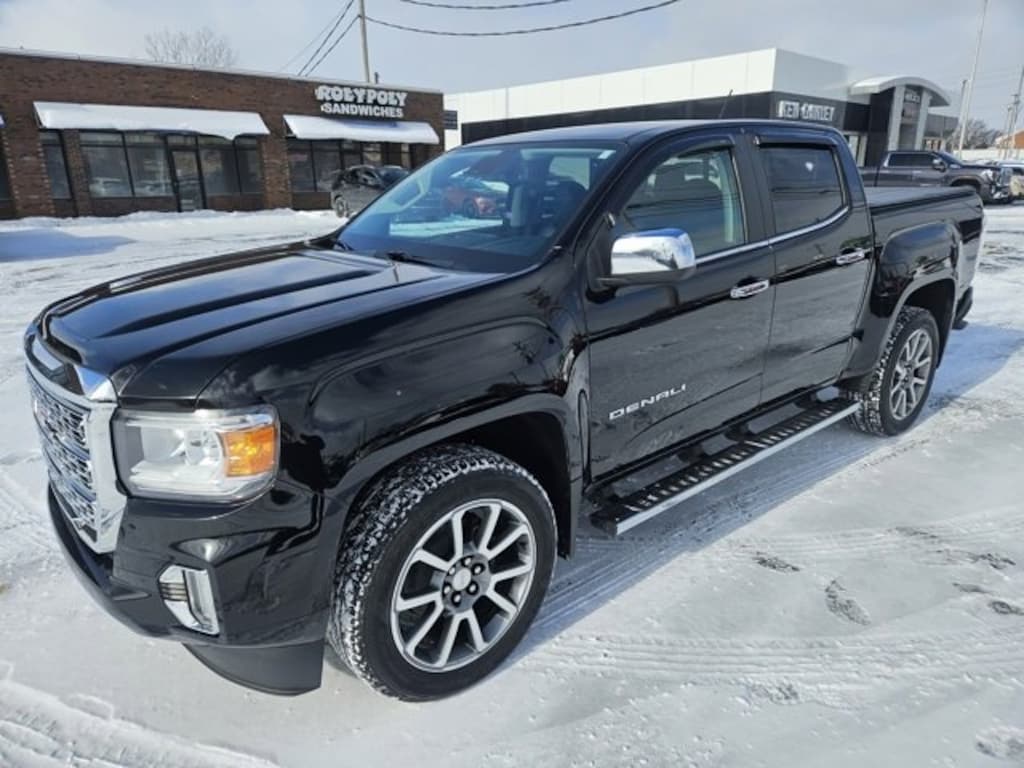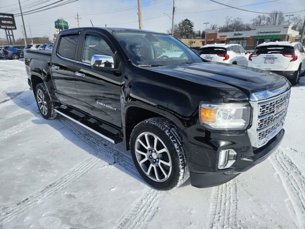 Recent Arrival! ACCIDENT FREE CARFAX, **CERTIFIED**, **NON-SMOKER**, **REMOTE START**, **NEW BRAKES**, **BACKUP CAMERA**, **BLUETOOTH**, **ANDROID AUTO / APPLE CAR PLAY**, **HEATED SEATS**, **COOLED SEATS**, **FORWARD COLLISION ALERT**, **HEATED STEERING WHEEL**, **LANE KEEP ASSIST**, **REAR PARK ASSIST**, **4 Wheel Drive**, 4WD. Certified. Onyx Black 2021 GMC Canyon Denali 4WD 8-Speed Automatic V6*We Deliver! From our Floor to your Door! With Ganley Buick GMC you can buy online! Email - chat - phone - Face-time - text and we will deliver your New or Used vehicle to your door! IT'S THAT EASY! (*Restrictions apply - see dealer for details) Odometer is 15381 miles below market average!GMC Certified Pre-Owned Details:* 172 Point Inspection* Powertrain Limited Warranty: 72 Month/100,000 Mile (whichever comes first) from original in-service date* Roadside Assistance* Limited Warranty: 12 Month/12,000 Mile (whichever comes first) from certified purchase date* Transferable Warranty* 24 months/24,000 miles (whichever comes first) Certified Pre-Owned Scheduled Maintenance Plan and 3 days/150 miles (whichever comes first) Vehicle Exchange Program. SiriusXM 3-month trial subscription* Vehicle History* Warranty Deductible: $0This vehicle is available for test drive most days, but to confirm availability please call us at (440)238-5600. For most recently updated pricing and to view other vehicles in our inventory please visit our website. www.GanleyBuickGMC.com Our family run dealership offers a friendly, inviting atmosphere with a staff equipped to helpfully guide you through your vehicle purchase.