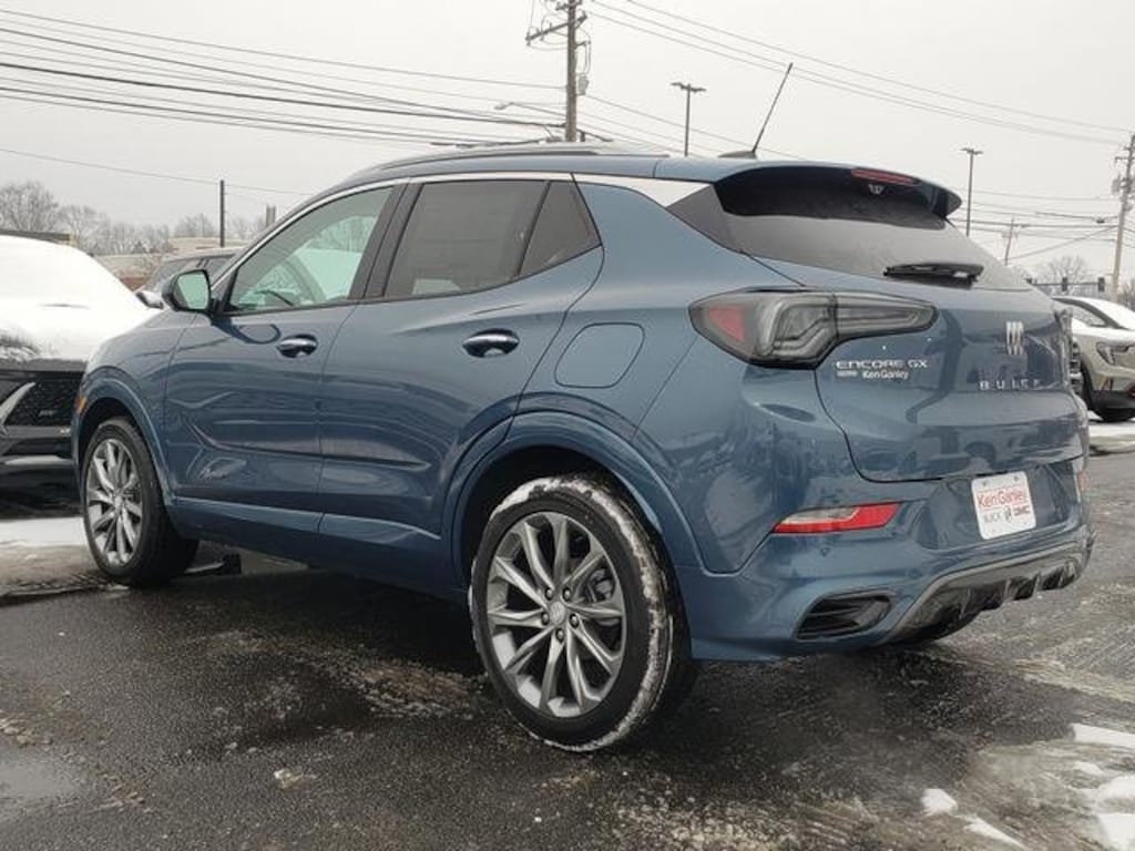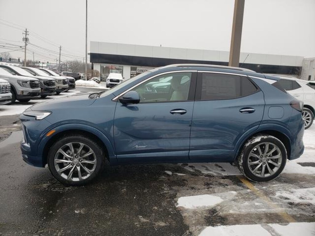 Ocean Blue Metallic 2026 Buick Encore GX Avenir AWD 9-Speed Automatic ECOTEC 1.3L TurboAvenir Convenience Package (Bose Premium 7-Speaker Audio System, Front Intermittent Rainsense Wipers, Hands Free Power Liftgate, and Rear Park Assist), Avenir Technology Package (Adaptive Cruise Control, HD Surround Vision, Rear Camera Mirror, Rear Camera Mirror Washer, and Wireless Charging), Preferred Equipment Group 1SL, 2-Way Front Passenger Power Lumbar, 2-Way Power Driver Lumbar Control, 3.17 Final Drive Axle Ratio, 4-Wheel Disc Brakes, 6-Way Power Front Passenger Seat Adjuster, 7 Speakers, 8-Way Power Driver Seat Adjuster, ABS brakes, Air Conditioning, All-Weather Floor Liners, Alloy wheels, AM/FM radio: SiriusXM, Auto High-beam Headlights, Auto-dimming Rear-View mirror, Automatic temperature control, Brake assist, Bumpers: body-color, Compass, Delay-off headlights, Driver door bin, Driver vanity mirror, Dual front impact airbags, Dual front side impact airbags, Electronic Stability Control, Emergency communication system: OnStar and Buick connected services capable, Enhanced Performance 7-Speaker System with Amplifier, Front anti-roll bar, Front Bucket Seats, Front Center Armrest, Front dual zone A/C, Front reading lights, Front wheel independent suspension, Fully automatic headlights, Garage door transmitter, Heated door mirrors, Heated Driver and Front Passenger Seats, Heated front seats, Heated steering wheel, Illuminated entry, Knee airbag, Low tire pressure warning, Memory seat, Occupant sensing airbag, Outside temperature display, Overhead airbag, Overhead console, Panic alarm, Passenger door bin, Passenger vanity mirror, Perforated Leather-Appointed Seat Trim, Power door mirrors, Power driver seat, Power Panoramic Tilt-Sliding Moonroof, Power passenger seat, Power steering, Power windows, Radio data system, Radio: AM/FM Audio System, Rear reading lights, Rear seat center armrest, Rear side impact airbag, Rear window defroster, Rear window wiper, Remote keyless entry, Ride and Handling Suspension, Security system, SiriusXM Trial Subscription, Speed control, Speed-sensing steering, Split folding rear seat, Spoiler, Steering wheel mounted audio controls, Tachometer, Telescoping steering wheel, Tilt steering wheel, Traction control, Trip computer, Variably intermittent wipers, Wheels: 19 Avenir Premium Pearl Nickel Aluminum, and Wireless Apple CarPlay/Wireless Android Auto. Recent Arrival! 26/28 City/Highway MPG*We Deliver! From our Floor to your Door! With Ganley Buick GMC you can buy online! Email - chat - phone - Face-time - text and we will deliver your New or Used vehicle to your door! IT'S THAT EASY! (*Restrictions apply - see dealer for details)