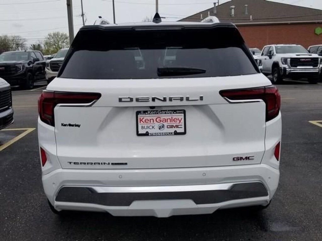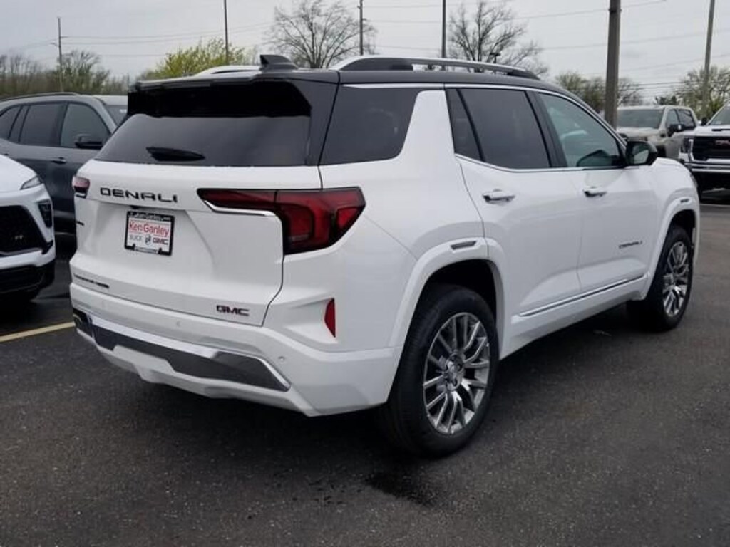 Summit White 2026 GMC Terrain Denali AWD 8-Speed Automatic with Overdrive 1.5L DOHC AWD.Preferred Equipment Group 5SB, AWD, 2-Way Power Driver Lumbar Seat Adjuster, 3.47 Final Drive Axle Ratio, 4-Wheel Disc Brakes, 6 Speakers, 6-Speaker Audio System Feature, 8-Way Power Driver Seat Adjuster, ABS brakes, Air Conditioning, Alloy wheels, AM/FM radio: SiriusXM, Auto High-beam Headlights, Automatic temperature control, Brake assist, Bumpers: body-color, Compass, Delay-off headlights, Driver and Front Passenger Heated Seats, Driver door bin, Driver vanity mirror, Dual front impact airbags, Dual front side impact airbags, Ebony Twilight Metallic Roof, Ebony Twilight Mirror Caps, Electronic Stability Control, Emergency communication system: OnStar and GMC connected services capable, Four wheel independent suspension, Front anti-roll bar, Front Bucket Seats, Front Center Armrest, Front dual zone A/C, Front fog lights, Front reading lights, Fully automatic headlights, Garage door transmitter, Heated door mirrors, Heated front seats, Heated rear seats, Heated steering wheel, Illuminated entry, Low tire pressure warning, Memory seat, Navigation System, Occupant sensing airbag, Outside temperature display, Overhead airbag, Overhead console, Panic alarm, Passenger door bin, Passenger vanity mirror, Perforated Leather-Appointed Seat Trim, Power door mirrors, Power driver seat, Power Liftgate, Power passenger seat, Power steering, Power windows, Radio data system, Radio: Premium GMC Infotainment System, Rain sensing wipers, Rear air conditioning, Rear anti-roll bar, Rear seat center armrest, Rear window defroster, Rear window wiper, Remote keyless entry, Security system, SiriusXM with 360L Trial Subscription, Speed control, Speed-sensing steering, Split folding rear seat, Spoiler, Sport steering wheel, Steering wheel mounted audio controls, Tachometer, Telescoping steering wheel, Tilt steering wheel, Traction control, Trip computer, Variably intermittent wipers, Ventilated Driver Seat, Ventilated Front Passenger Seat, Ventilated front seats, Wheels: 19 x 7.5 Midnight Silver Aluminum, and Wireless Apple CarPlay/Wireless Android Auto. Recent Arrival! 24/26 City/Highway MPG*We Deliver! From our Floor to your Door! With Ganley Buick GMC you can buy online! Email - chat - phone - Face-time - text and we will deliver your New or Used vehicle to your door! IT'S THAT EASY! (*Restrictions apply - see dealer for details) Price includes: $1000 - Buick GMC Bonus Cash. Exp. 04/30/2026