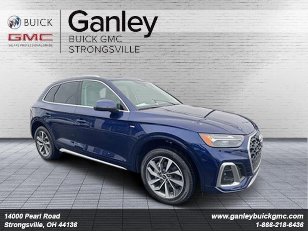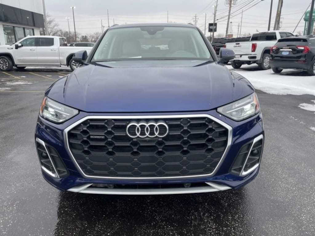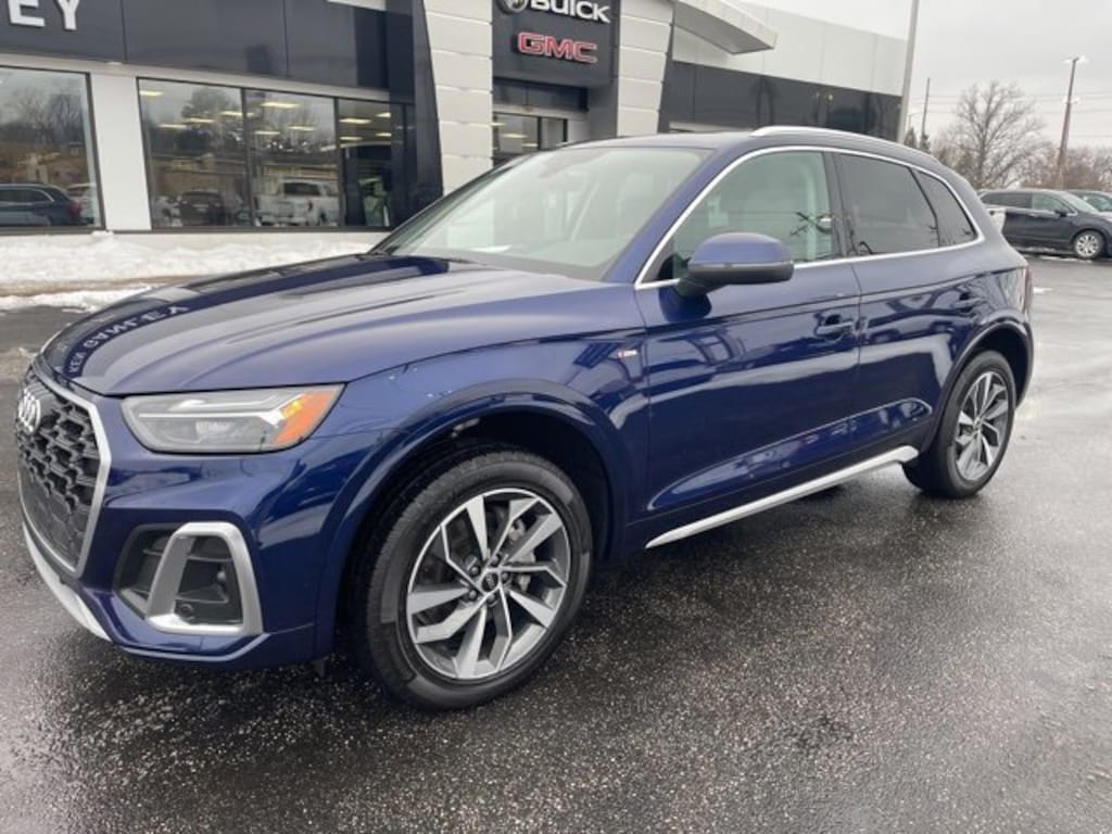 Recent Arrival! ACCIDENT FREE CARFAX, 1-OWNER VEHICLE, **NON-SMOKER**, LOCAL TRADE IN, SUNROOF/MOONROOF, **NAVIGATION**, **BACKUP CAMERA**, **BLUETOOTH**, **BLIND SPOT MONITORING**, **ANDROID AUTO / APPLE CAR PLAY**, **HEATED SEATS**, **PANORAMIC ROOF**, **All Wheel Drive**, Gray Leather. Blue Metallic 2023 Audi Q5 45 S line Premium quattro quattro quattro 7-Speed Automatic S tronic 2.0L Turbocharged