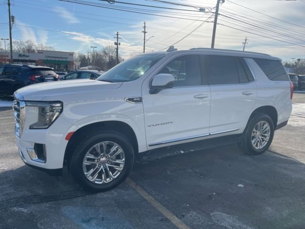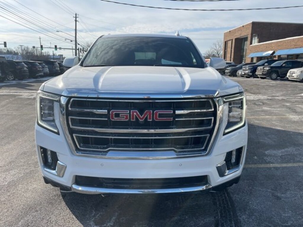 Recent Arrival! ACCIDENT FREE CARFAX, 1-OWNER VEHICLE, **NON-SMOKER**, LOCAL TRADE IN, **REMOTE START**, **NEW TIRES**, **BACKUP CAMERA**, **BLUETOOTH**, **BLIND SPOT MONITORING**, **ANDROID AUTO / APPLE CAR PLAY**, **HEATED SEATS**, **COOLED SEATS**, **FORWARD COLLISION ALERT**, **HEATED STEERING WHEEL**, **FRONT PEDESTRIAN BRAKING**, **REAR PARK ASSIST**, **4 Wheel Drive**, **HEATED SECOND ROW**, 4WD. Summit White 2021 GMC Yukon SLT 4WD 10-Speed Automatic with Overdrive EcoTec3 5.3L V8