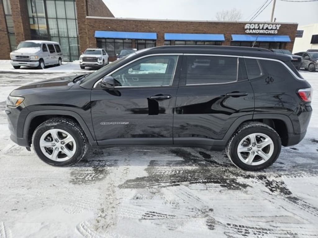 ACCIDENT FREE CARFAX, 1-OWNER VEHICLE, **NON-SMOKER**, **REMOTE START**, **ANDROID AUTO / APPLE CAR PLAY**, **HEATED SEATS**, **BALANCE OF FACTORY WARRANTY**, **4 Wheel Drive**, 4WD, 2nd Row USB Type A/C Charge Only, Air Conditioning ATC w/Dual Zone Control, All-Season Floor Mats, Auto-Dimming Rear-View Mirror, Convenience Group, Foot Activated Open 'N Go Liftgate, Heated Front Seats, Heated Steering Wheel, Humidity Sensor, Power 2-Way Driver Lumbar Adjust, Power Adjust 8-Way Driver Seat, Power Liftgate, Remote Start System, Reversible Carpet/Vinyl Cargo Mat, Universal Garage Door Opener, Windshield Wiper De-Icer. Diamond Black Crystal Pearlcoat 2023 Jeep Compass Latitude 4WD 8-Speed Automatic 2.0L I4 DOHC