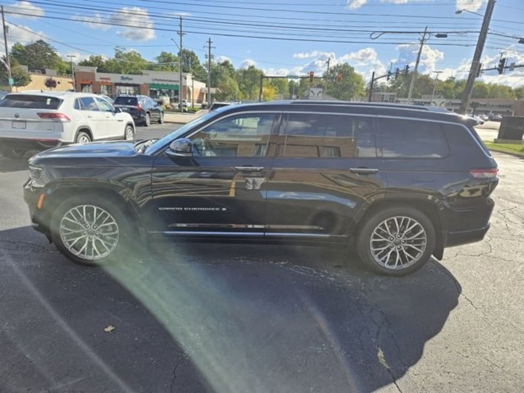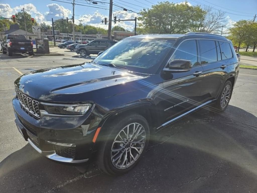 **NON-SMOKER**, **NAVIGATION**, **REMOTE START**, **BACKUP CAMERA**, **BLIND SPOT MONITORING**, **ANDROID AUTO / APPLE CAR PLAY**, **HEATED SEATS**, **BALANCE OF FACTORY WARRANTY**, **PANORAMIC ROOF**, **HEADS UP DISPLAY**, **COOLED SEATS**, **HEATED STEERING WHEEL**, **4 Wheel Drive**, 2nd Row Manual Window Shades, Adaptive suspension, Advanced Protech Group IV, Auto-leveling suspension, Front Passenger Interactive Display, Heads-Up Display, Interior Rear Facing Camera, Luxury Tech Group V, MOPAR Finishing Package, MOPAR Front Splash Guards, MOPAR Paint Protection Film, MOPAR Rear Splash Guards w/Jeep Logo, Night Vision/Pedestrian-Animal Detection, Rearview Autodim Digital Display Mirror, Ventilated front seats, Ventilated Rear Seats, Wireless Charging Pad. Diamond Black Crystal Pearlcoat 2023 Jeep Grand Cherokee L Summit 4WD 8-Speed Automatic HEMI 5.7L V8 Multi Displacement VVT