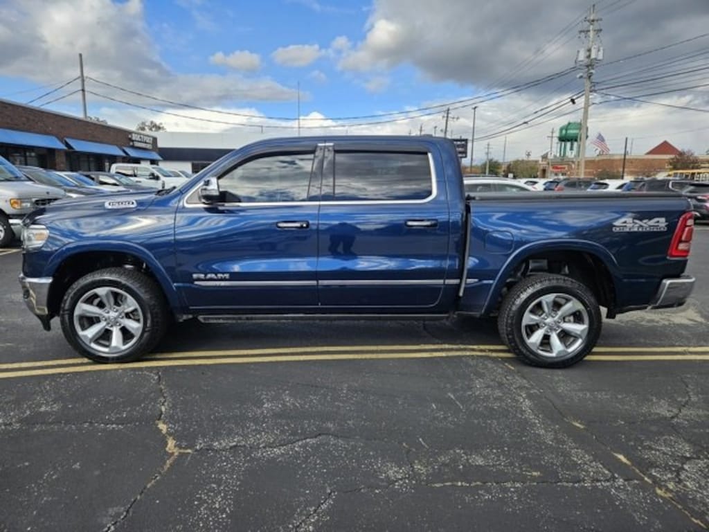 LOCAL TRADE IN, **NAVIGATION**, **REMOTE START**, **BACKUP CAMERA**, **ANDROID AUTO / APPLE CAR PLAY**, **HEATED SEATS**, **PANORAMIC ROOF**, **HEADS UP DISPLAY**, **COOLED SEATS**, **HEATED STEERING WHEEL**, **4 Wheel Drive**, Adaptive Cruise Control w/Stop & Go, Bed Utility Group, E-Locker Rear Axle, Front Extra HD Shock Absorbers, Heads-Up Display, Hill Descent Control, Lane Keep Assist, LED CHMSL Lamp, Limited Level 1 Equipment Group, MOPAR 4 Adjustable Cargo Tie-Down Hooks, MOPAR Deployable Bed Step, Navigation System, Off Road Decals, Off Road Group, Off-Road Information Pages, Parallel & Perp Park Assist w/Stop, Pedestrian Emergency Braking, Pick-Up Box Lighting, Rear Extra HD Shock Absorbers, Rearview Autodim Digital Display Mirror, Surround View Camera System, Technology Group, Trailer Brake Control, Trailer Light Check, Trailer Reverse Steering Control, Trailer Tire Pressure Monitoring System, Trailer Tow Group (DISC), Ventilated Rear Seats. Patriot Blue Pearlcoat 2021 Ram 1500 Limited 4WD 8-Speed Automatic EcoDiesel 3.0L V6